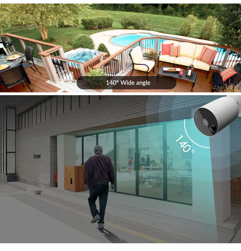 Благодаря использованию высококачественной технологии обработки изображений, угол обзора 140 ° позволяет мониторить большое пространство. Будьте уверены, зная, что где бы вы ни разместили свою камеру, вы будете иметь полную картину происходщего.