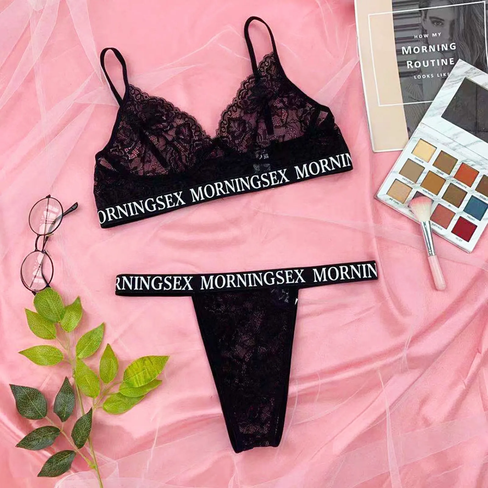 Сексуальное нижнее белье, женское прозрачное кружевное нижнее белье из трех частей, сексуальный бюстгальтер без стальных колец, стринги, костюм из двух частей, индивидуальное белье