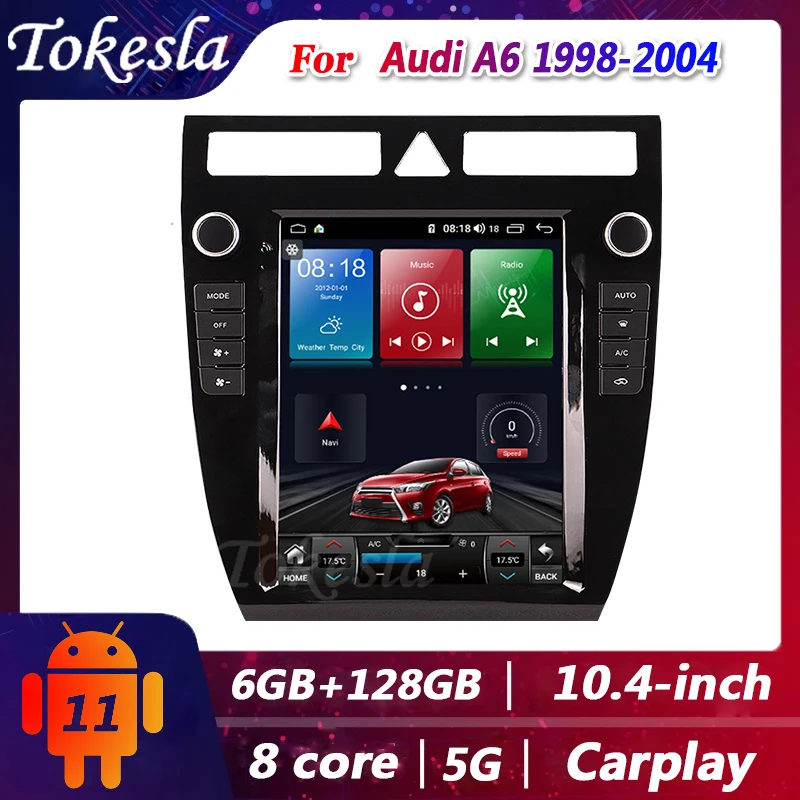 Автомагнитола Tokesla, мультимедийная система на Android 11, с DVD, 4G, MP5, для Audi A6, C5, типоразмер 2 Din