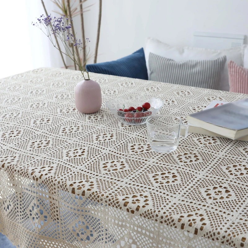 Вязаная крючком скатерть домашняя декоративная прямоугольная ткань кружевная бежевая спальня журнальный столик для гостиной скатерть тканевый коврик