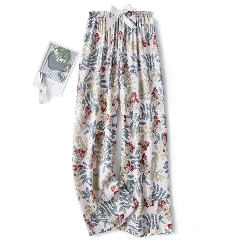 Хлопковая женская летняя тонкая Пижама с широкими штанинами, брюки, Женская домашняя одежда для сна, Разноцветные Повседневные мягкие женские брюки с принтом