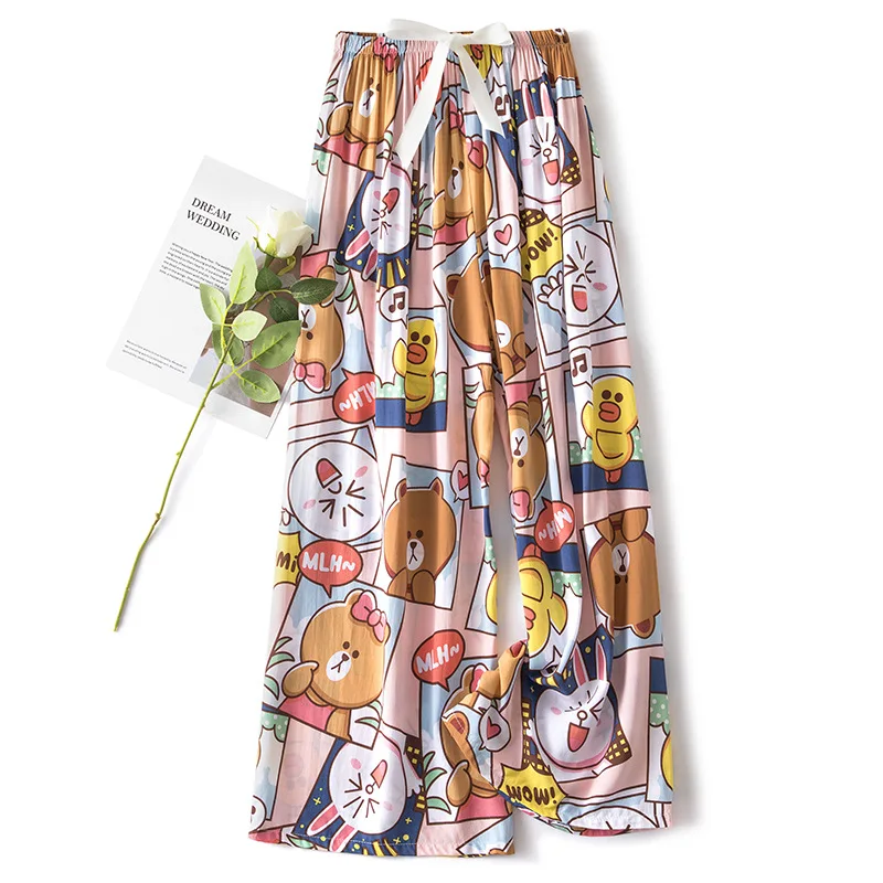 Летние длинные штаны с принтом, штаны для сна, женские пижамы из см...