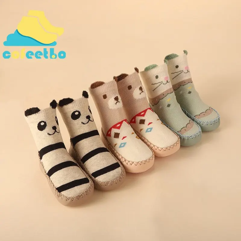 Милые Мультяшные детские носки для пола Нескользящие мягкие дышащие носки для новорожденных младенцев осенние удобные детские носки обувь