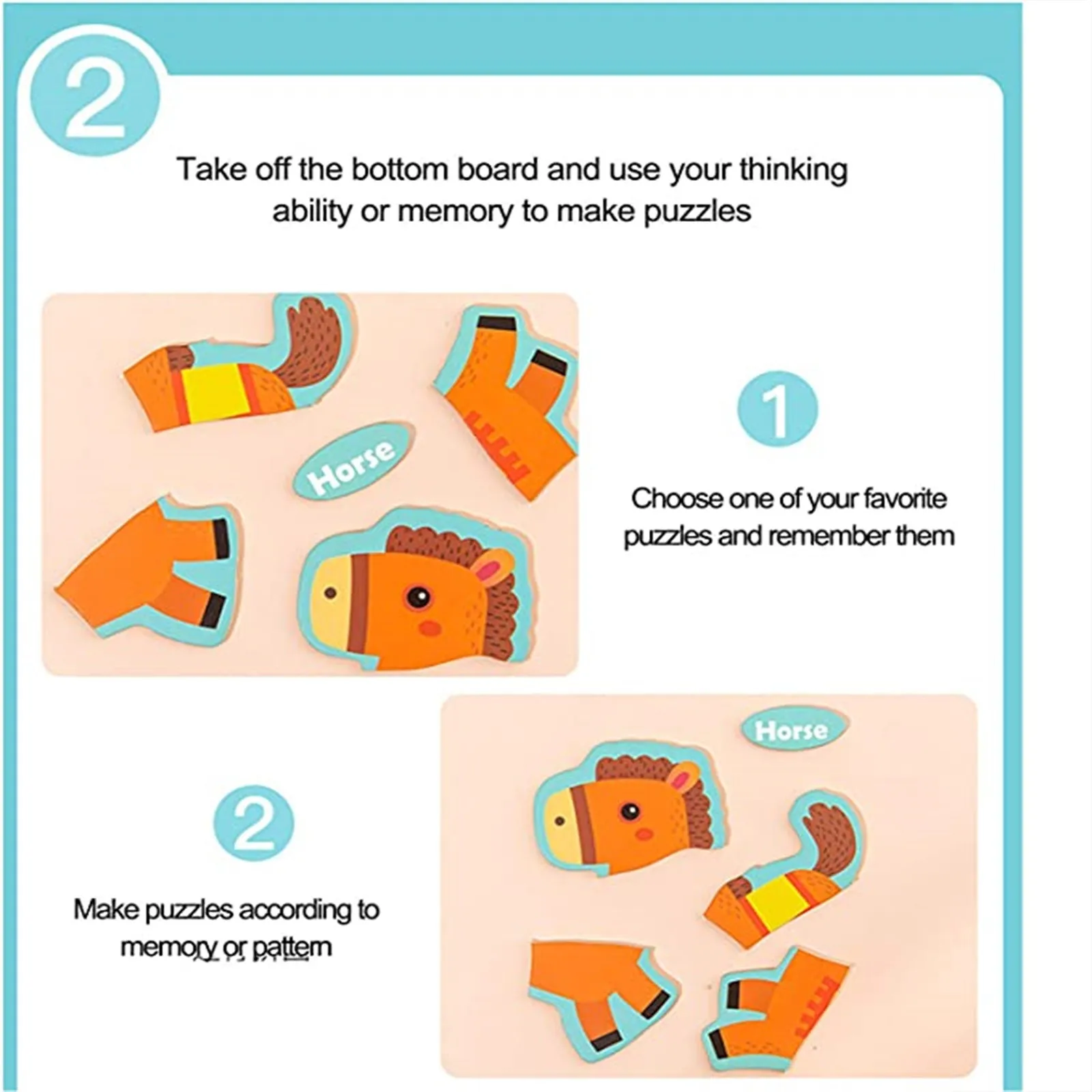 Игра: деревянные пазлы для малышей содержат 1 упаковку хорошо подобранных животных