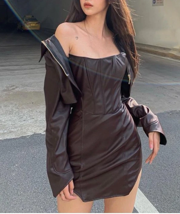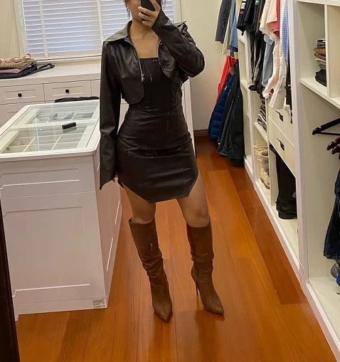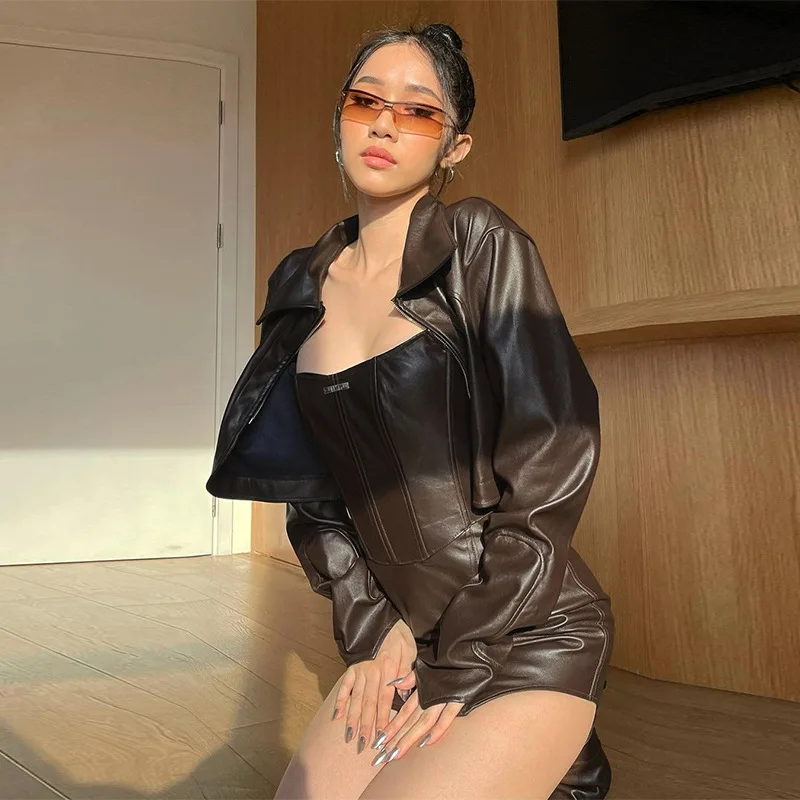 Женская куртка из искусственной кожи, короткая пикантная куртка на молнии с длинным рукавом, модель Y2k в европейском стиле, 2022