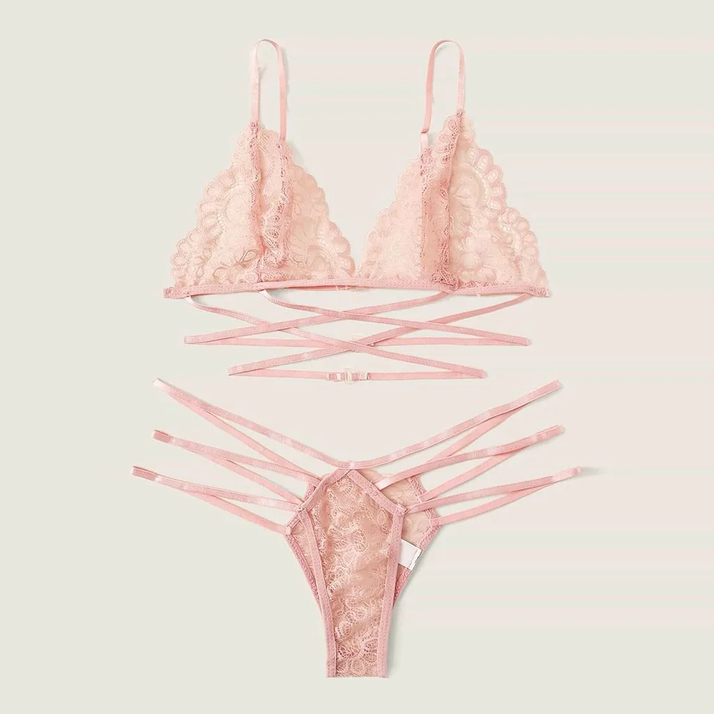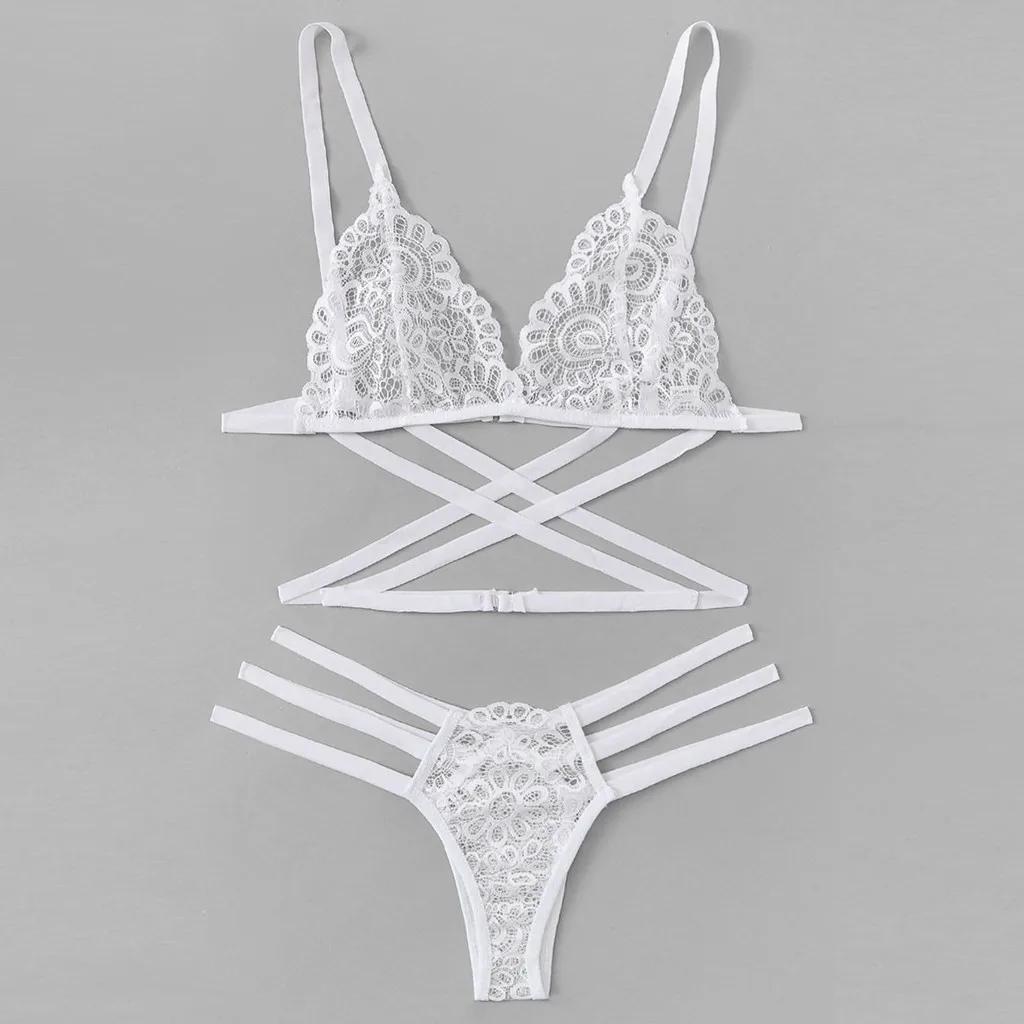 Комплект экзотического нижнего белья, женская одежда для сна, ажурный бандажный бюстгальтер, нижнее белье, ночное белье, женское белье