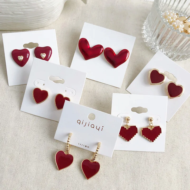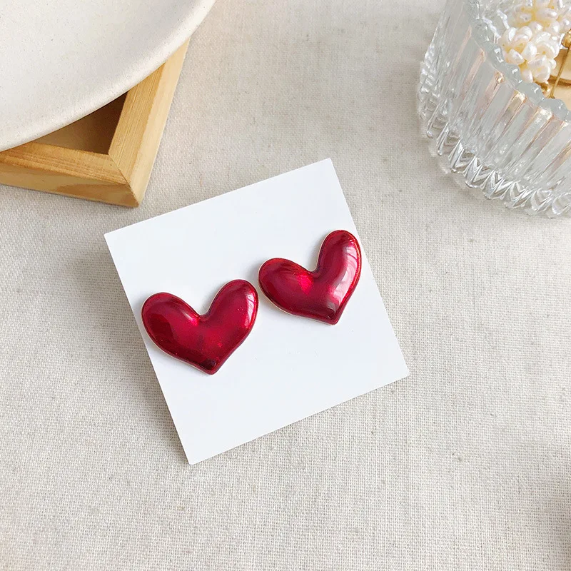 LOVOACC милые эмалевые красные серьги-подвески в форме сердца для женщин и девушек, металлические эффектные разнообразные серьги в форме сердца
