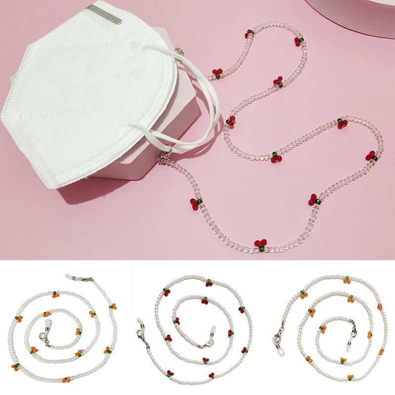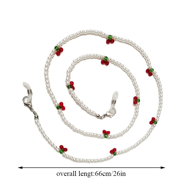 Модная цепочка для очков в виде вишни с кристаллами, милые прозрачные бусины, Жемчужная Маска, цепочка на шею, ремешки, Висячие маски, солнцезащитные очки, шнурок, ювелирные изделия