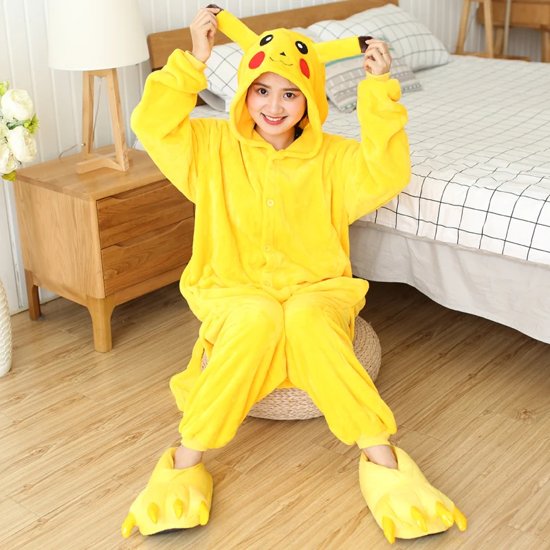 Пижама фланелевая унисекс, Кигуруми для взрослых, милый пижамный комплект с капюшоном в виде единорога, Тоторо, Мультяшные животные, Пижама