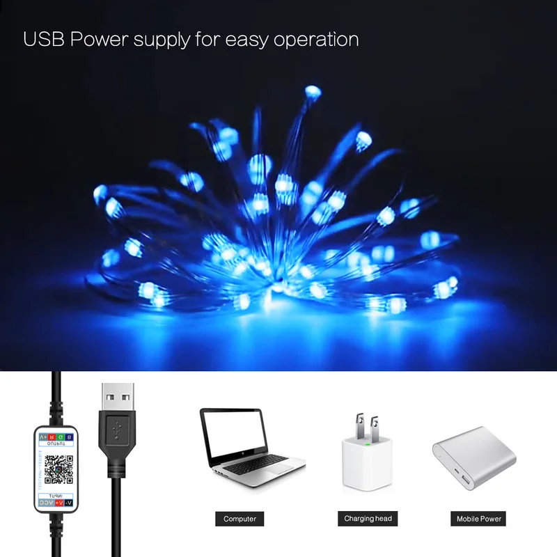 USB-гирлянда светодиодная Водонепроницаемая с управлением через приложение