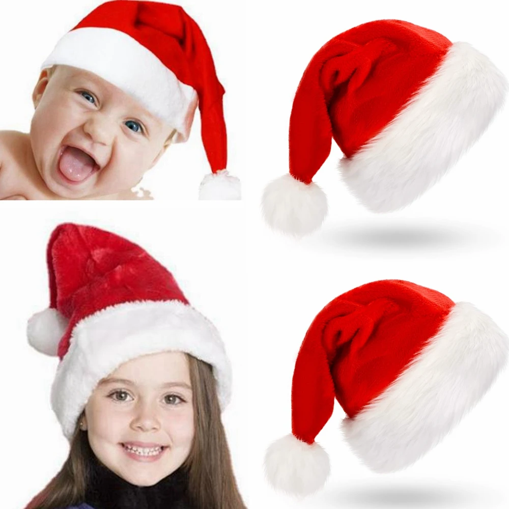 Новый год 2022 Рождественская шапка из плюша Взрослые Дети Рождественские украшения для дома Рождество Санта-Клаус подарок теплые зимние шапки Рождество