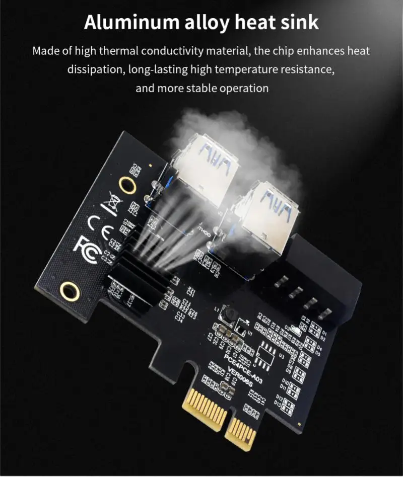 Количество интерфейсов: PCI-E X1, USB 3,0*4, molex 4 Pin порт питания