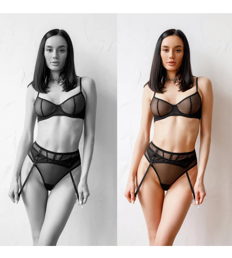 Сетчатое нижнее белье, подвязка, Женский комплект нижнего белья, кр...