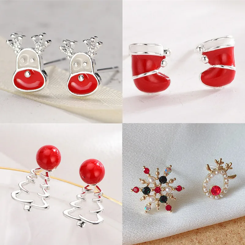 Симпатичные рождественские серьги-гвоздики для женщин Стразы снежинки Лось серьги с цирконом украшения для ушей рождественские подарки новогодний декор 2022