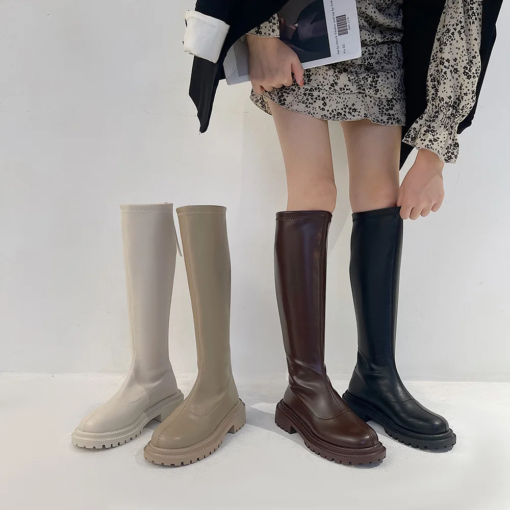 Облегающие сапоги до бедра на плоской подошве; Женские сапоги до ко...