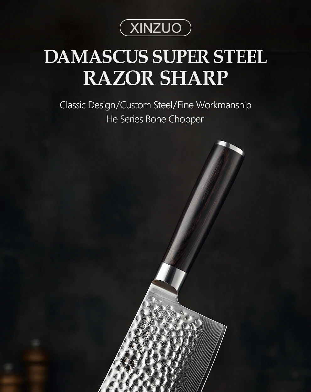 XINZUO He серия Дамасская сталь кости нож измельчитель