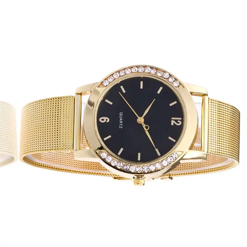 Женские Аналоговые кварцевые часы с сетчатым браслетом из нержавеющ...
