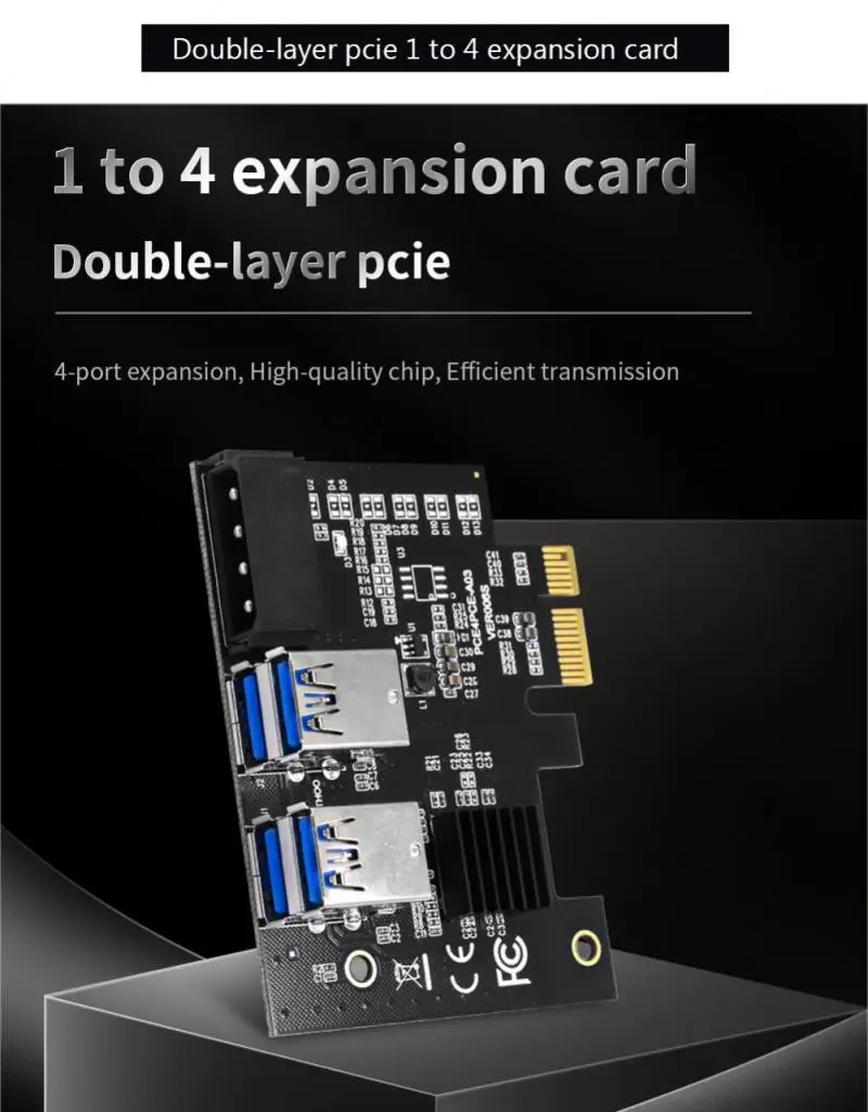 Количество интерфейсов: PCI-E X1, USB 3,0*4, molex 4 Pin порт питания