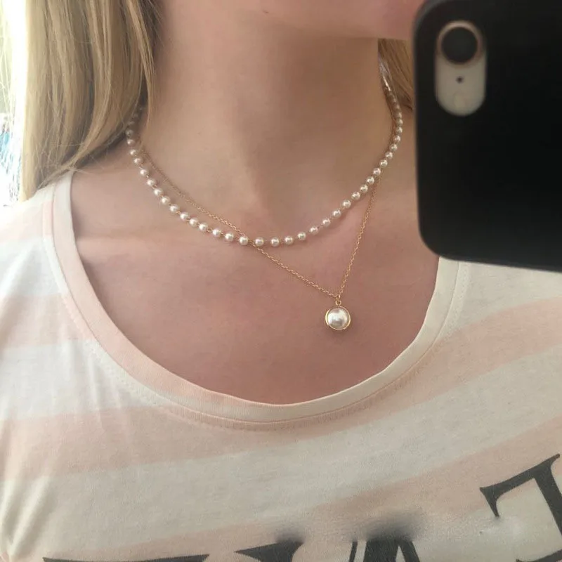 Новинка 2022, модное ожерелье-чокер с жемчугом Kpop, милое Двухслойное ожерелье-цепочка с кулоном для женщин, ювелирные изделия, подарок для девушек, чокер
