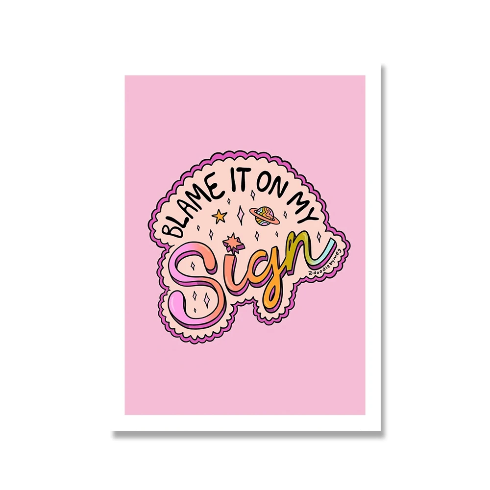 Плакат с рисунком кота, рыбы, Овен, Постер с абстрактным телом, лун...