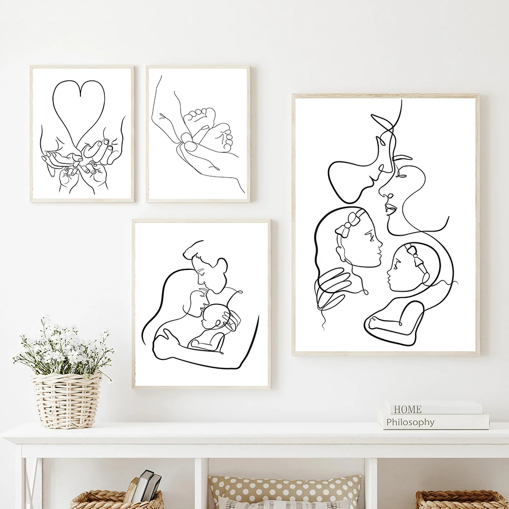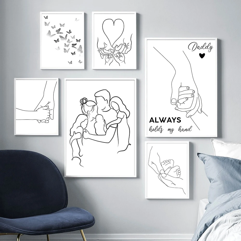 Скандинавская линия, художественные плакаты, семейная любовь, Бабочка, детский отпечаток, настенное полотно, черные, белые картины, картины, постельное белье, домашний декор