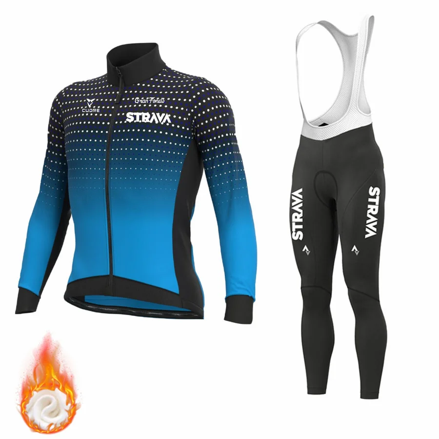 Новинка 2022, зимний теплый флисовый комплект трикотажных изделий STRAVA для езды на велосипеде, комплект для езды на горном велосипеде, длинная одежда для езды на велосипеде, одежда для езды на велосипеде