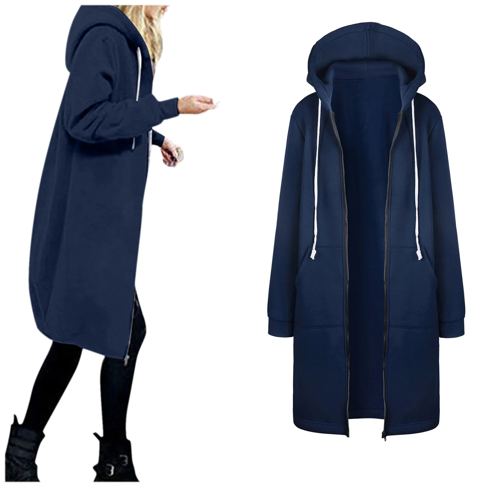 Осенние толстовки на молнии, пальто, длинные зимние толстовки, Женс...