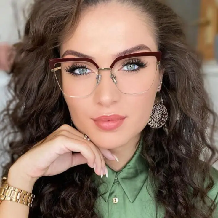 Модные очки кошачий глаз для близорукости с фильтром сисветильник прозрачные линзы для близорукости 2021 роскошные дизайнерские ретро красные очки в оправе