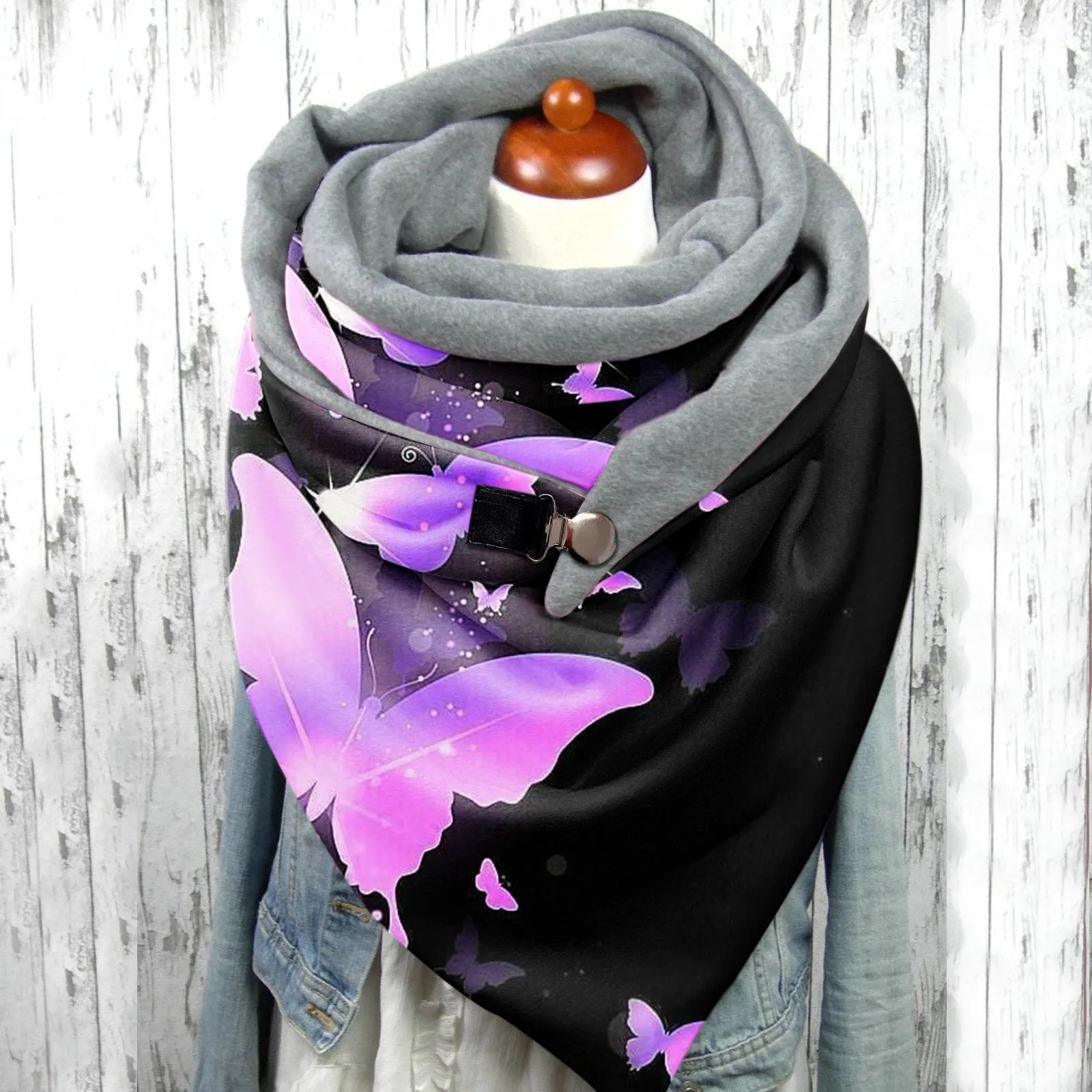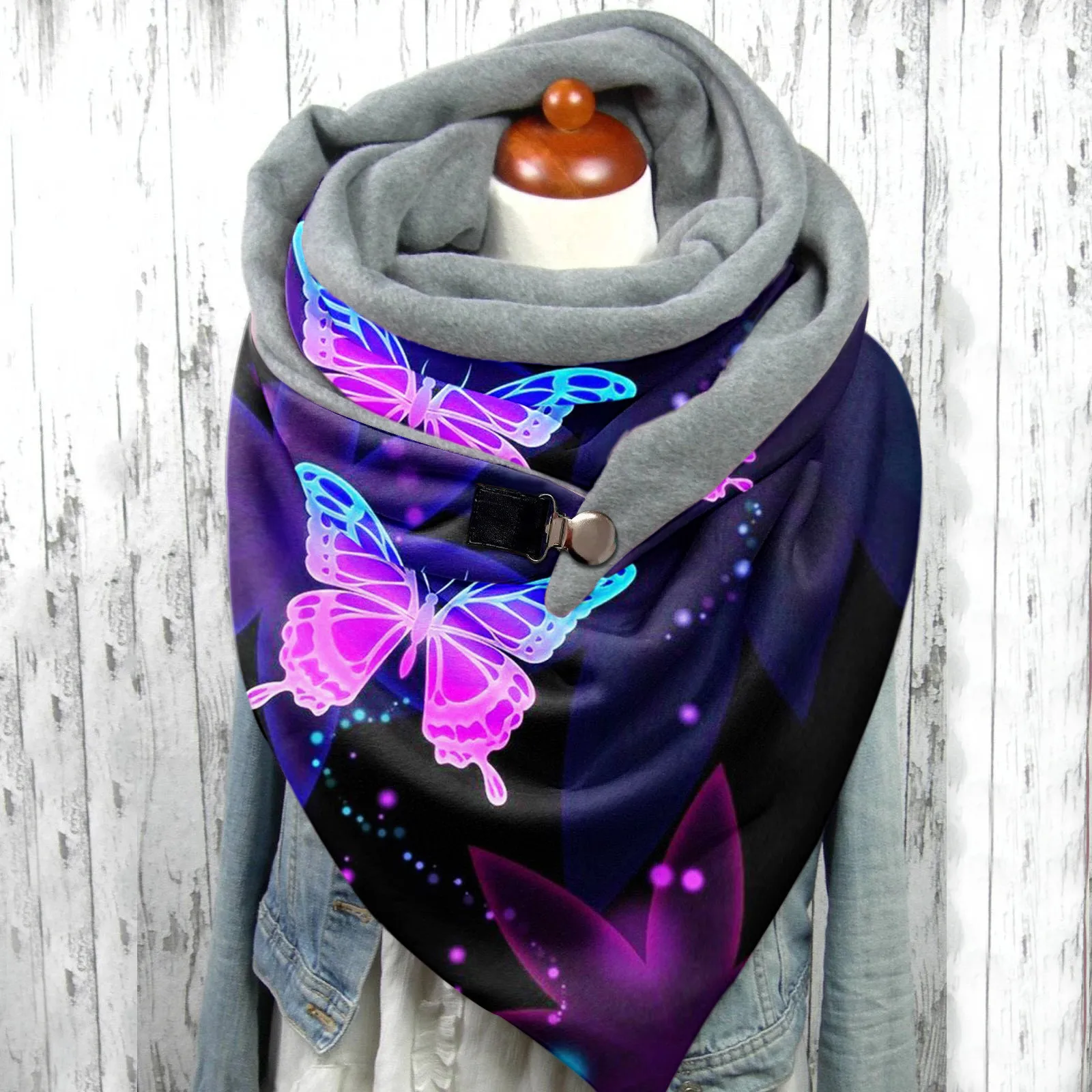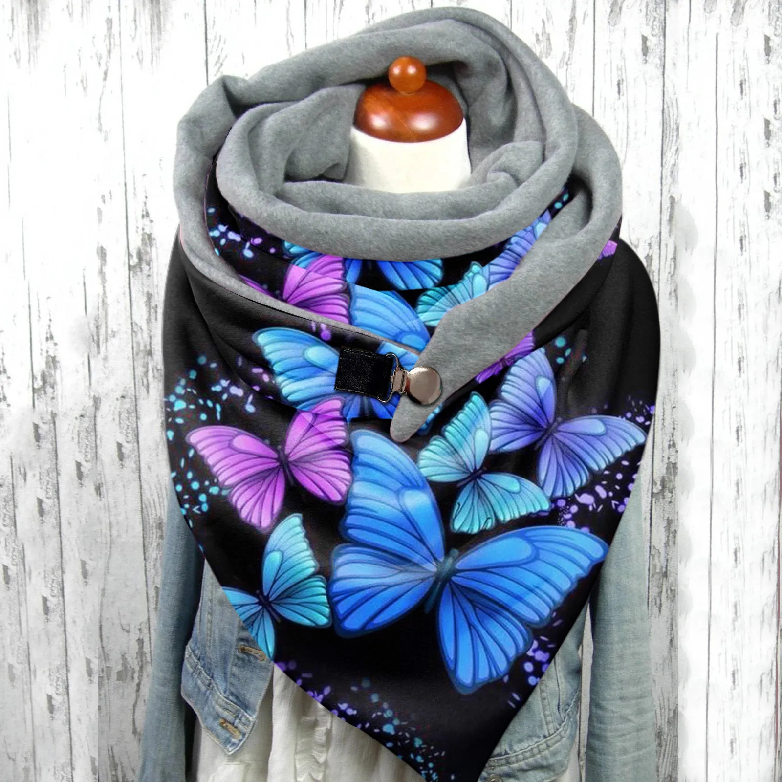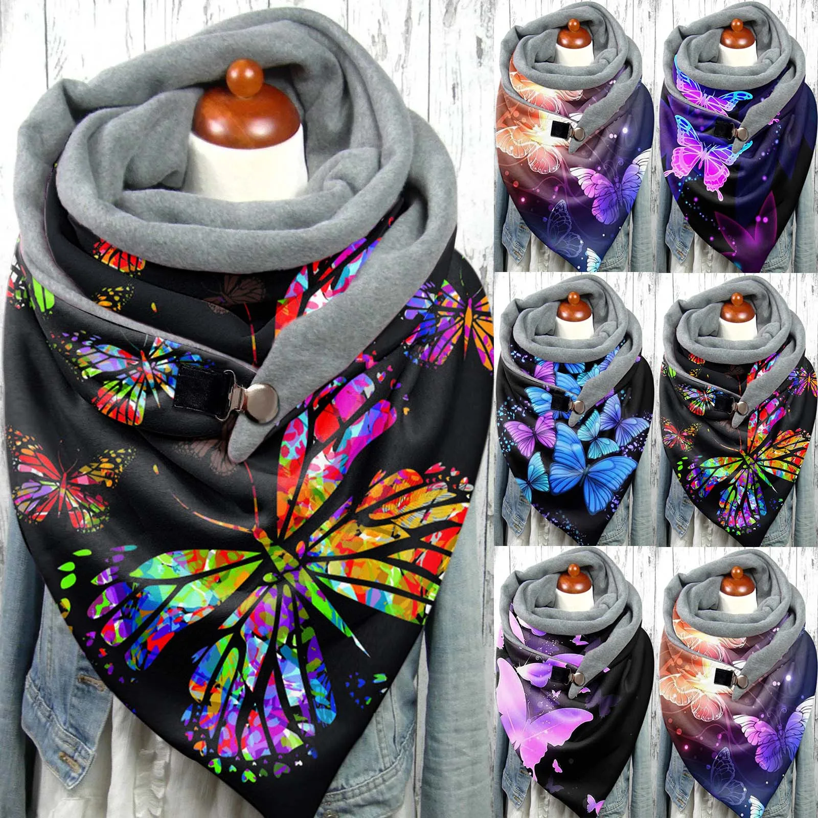 2021 Модные женские мягкие шарфы на пуговицах с принтом бабочки, повседневные Теплые шали, зимние шали на пуговицах, шаль для женщин, хиджаб