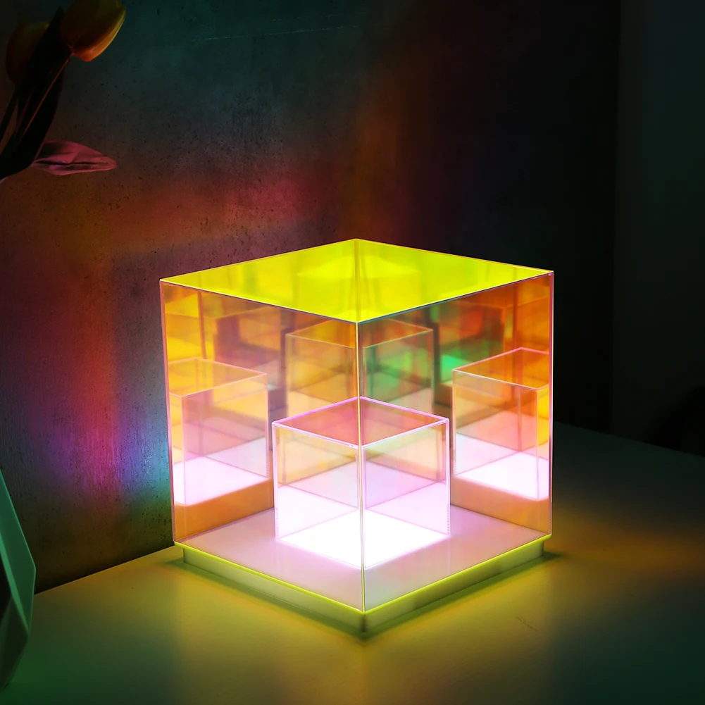 Акриловые декоративные лампы, 3D волшебный куб, светильник для спальни, прикроватный красочный Домашний Настольный светодиодный ночник, детский подарок