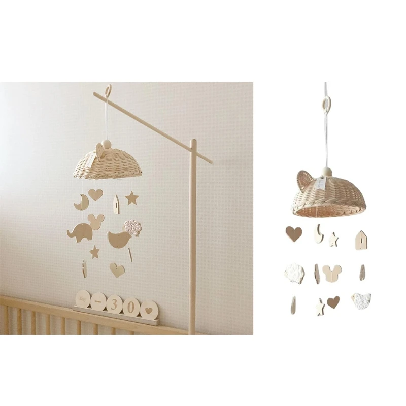 Мобиль детский из ротанга, погремушки в кроватку, деревянный, для д...