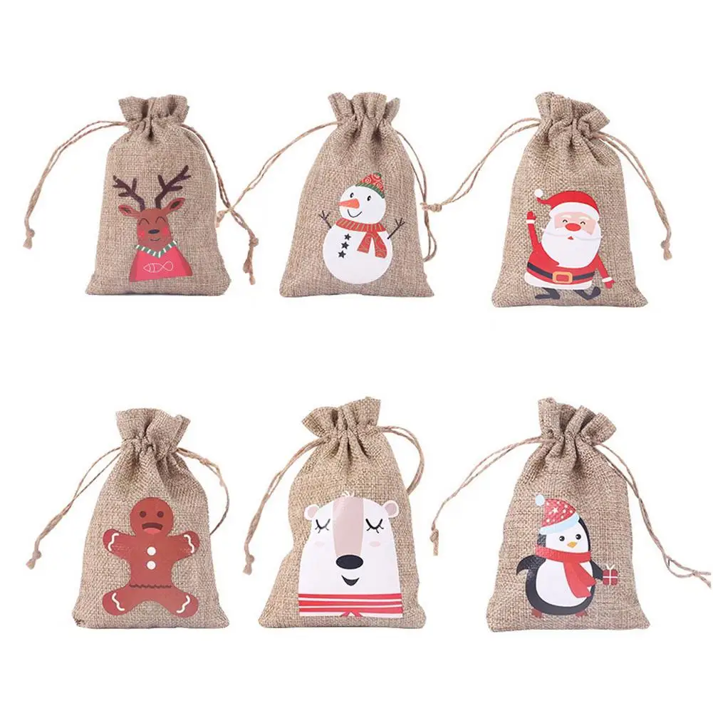 Набор сумок с календарем для нового года, милые Мультяшные подарочные пакеты с обратным отсчётом для рождества, с кулиской для хранения конфет, подвесные украшения