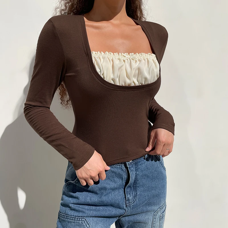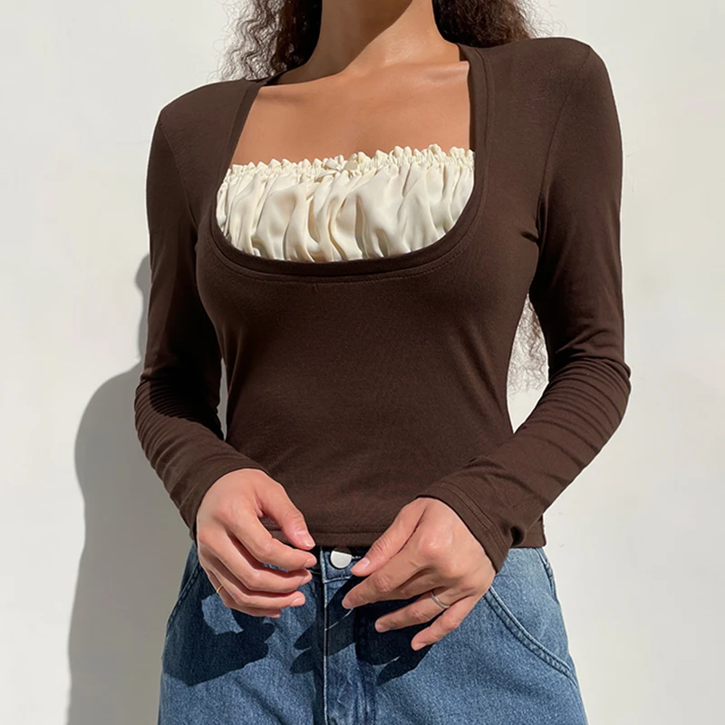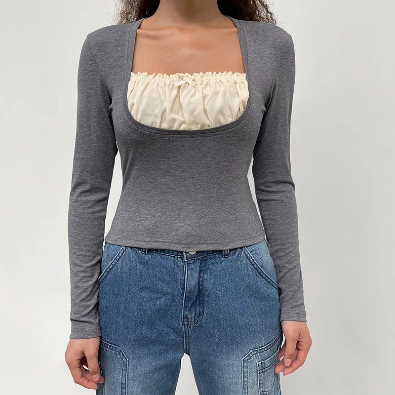 Футболка с длинным рукавом и квадратным вырезом, демисезонная новин...