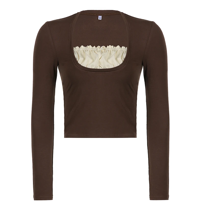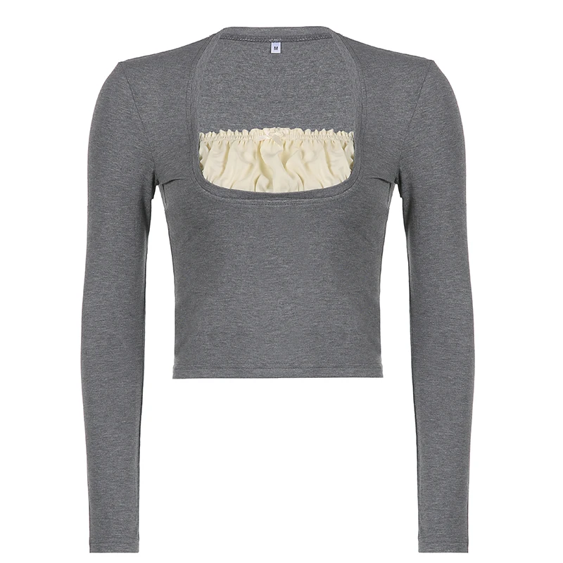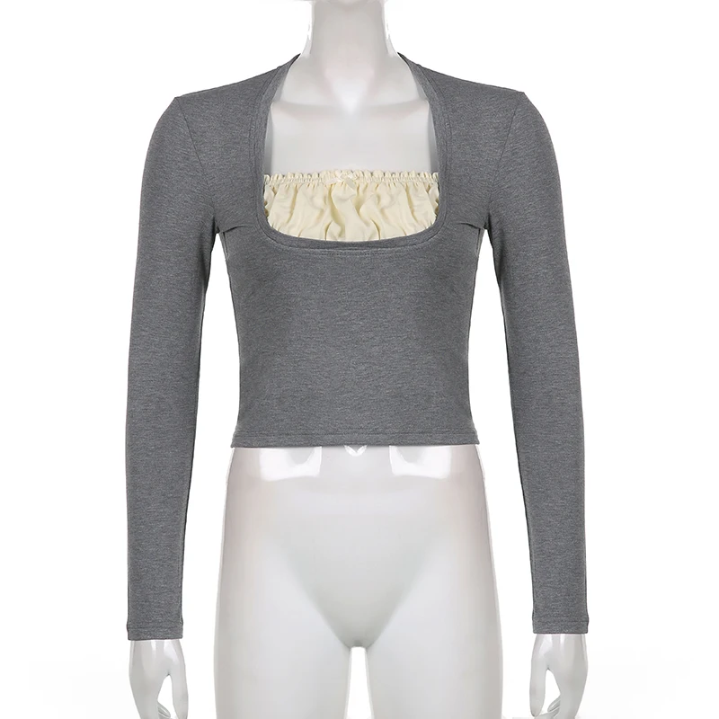 Женская футболка с квадратным вырезом, длинным рукавом и квадратным...