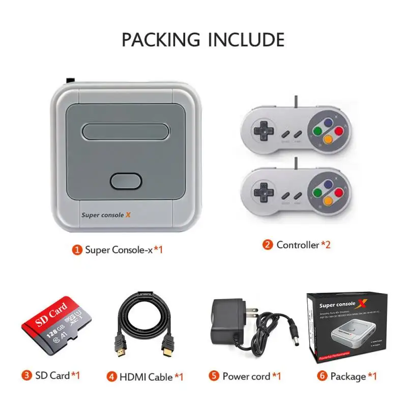 • 50000 + Ретро-игр, мощная игровая система, может запускать PSP, PS1, N64 и т. д. 50 + эмуляторы предварительно установлены.
