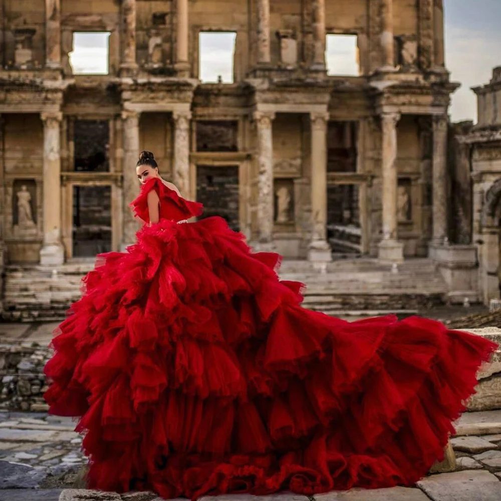 Великолепное красное платье принцессы с оборками, бальное платье на одно плечо с открытой спиной, свадебные платья, женское платье
