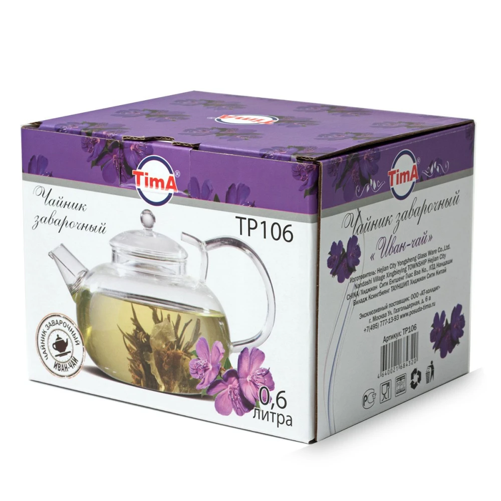 TIMA Чайник заварочный стеклянный ИВАН-ЧАЙ 600мл (пружина в носике)