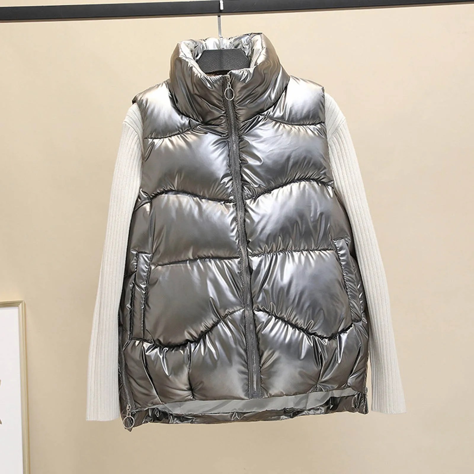 Осень-зима 2021, Женский однотонный Свободный жилет, женский ветрозащитный Теплый жилет с воротником-стойкой и хлопковой подкладкой