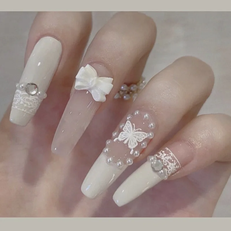 24 шт. искусственные ногти стразы жемчужные накладные ногти полное покрытие Типсы для ногтей бабочки Мультяшные нажимные французские балерины накладные ногти