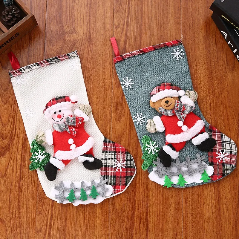 1 шт. рождественские чулки, носки с принтом снеговика, Санта-Лоси, медведя, рождественский подарок, мешок для камина, украшение для рождественской елки, новый год