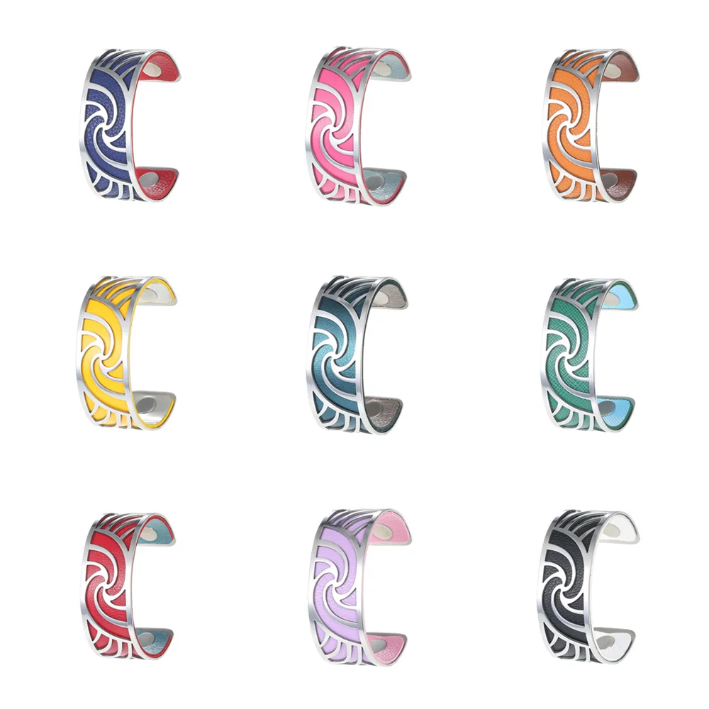 Браслеты-манжеты женские из нержавеющей стали со сменным кожаным ремешком