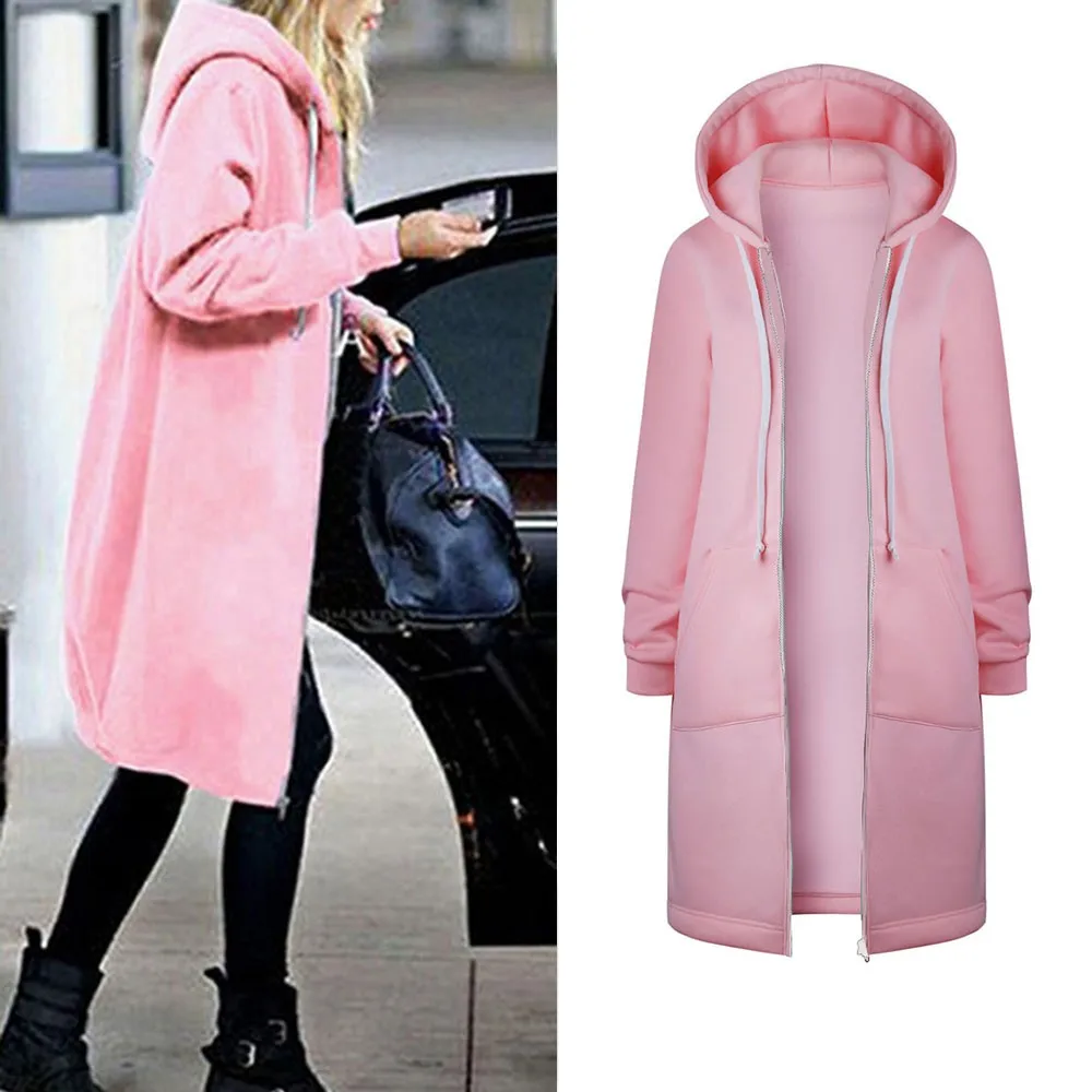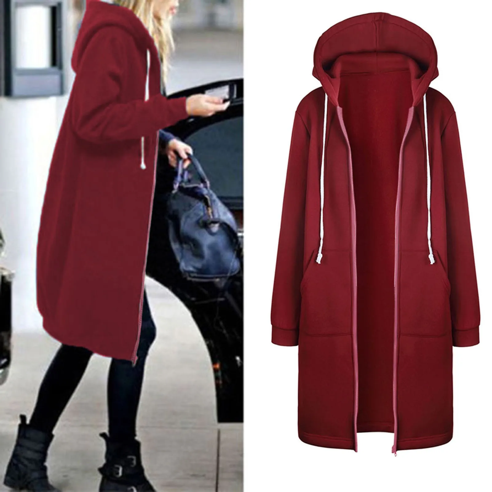 Женские толстовки, теплые толстовки на молнии, свитшот, длинное пальто, куртка, топы, верхняя одежда на молнии, женская верхняя одежда