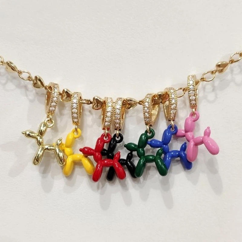 Ожерелье с металлической цепочкой для женщин, мультяшный пудель, воздушный шар, собака, сердце, милая подвеска-чокер с животным из циркония карамельного цвета, ювелирные изделия