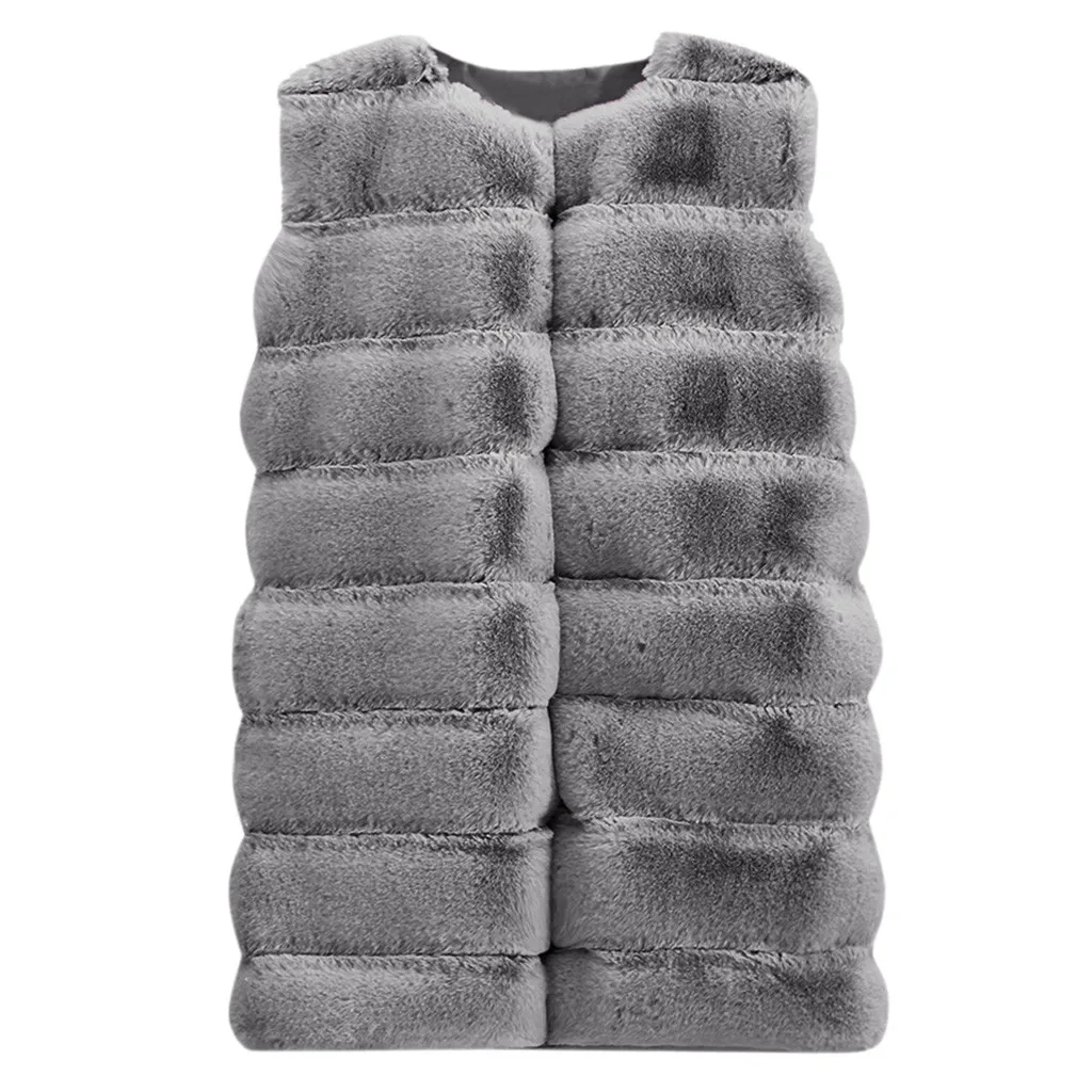2022 Женский Длинный жилет из искусственного меха, зимняя модная однотонная безрукавка, плотная теплая Женская куртка, пальто, женская верхняя одежда #40