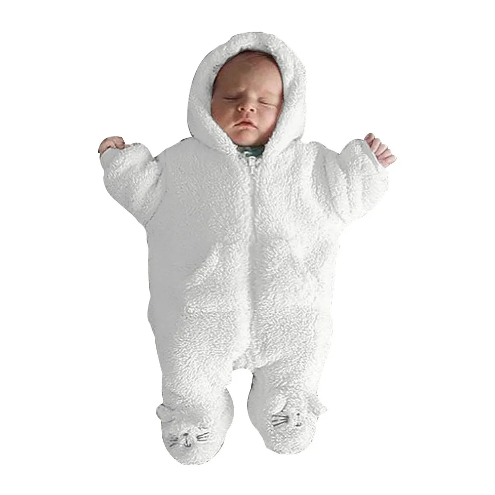 2021 зимняя детская одежда для новорожденных мальчиков и девочек плюс бархатный теплый комбинезон с капюшоном комбинезон однотонный мультяшный комбинезон для младенцев # fs