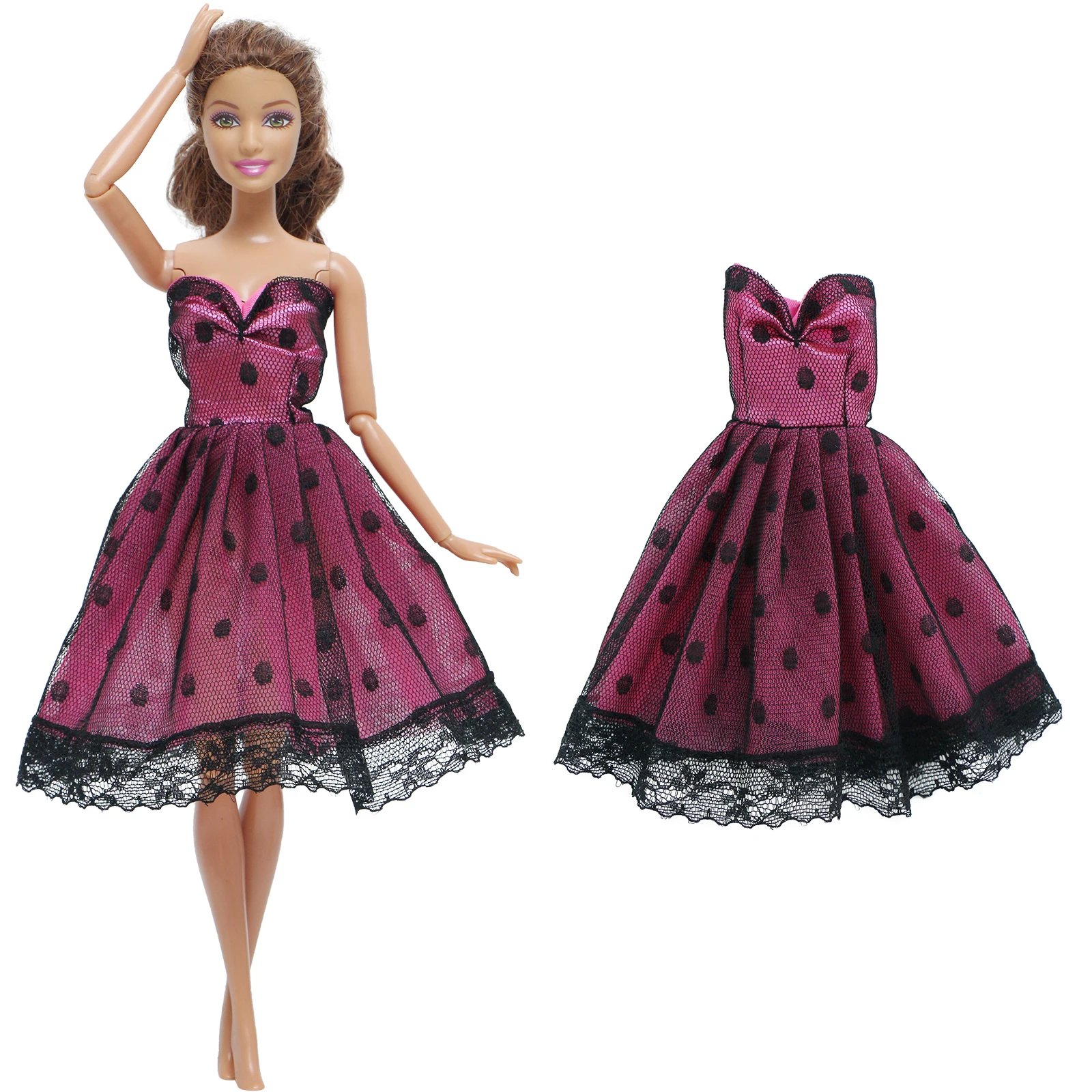 1x платье для куклы, черная юбка в горошек, наряд с бантом, одежда ...