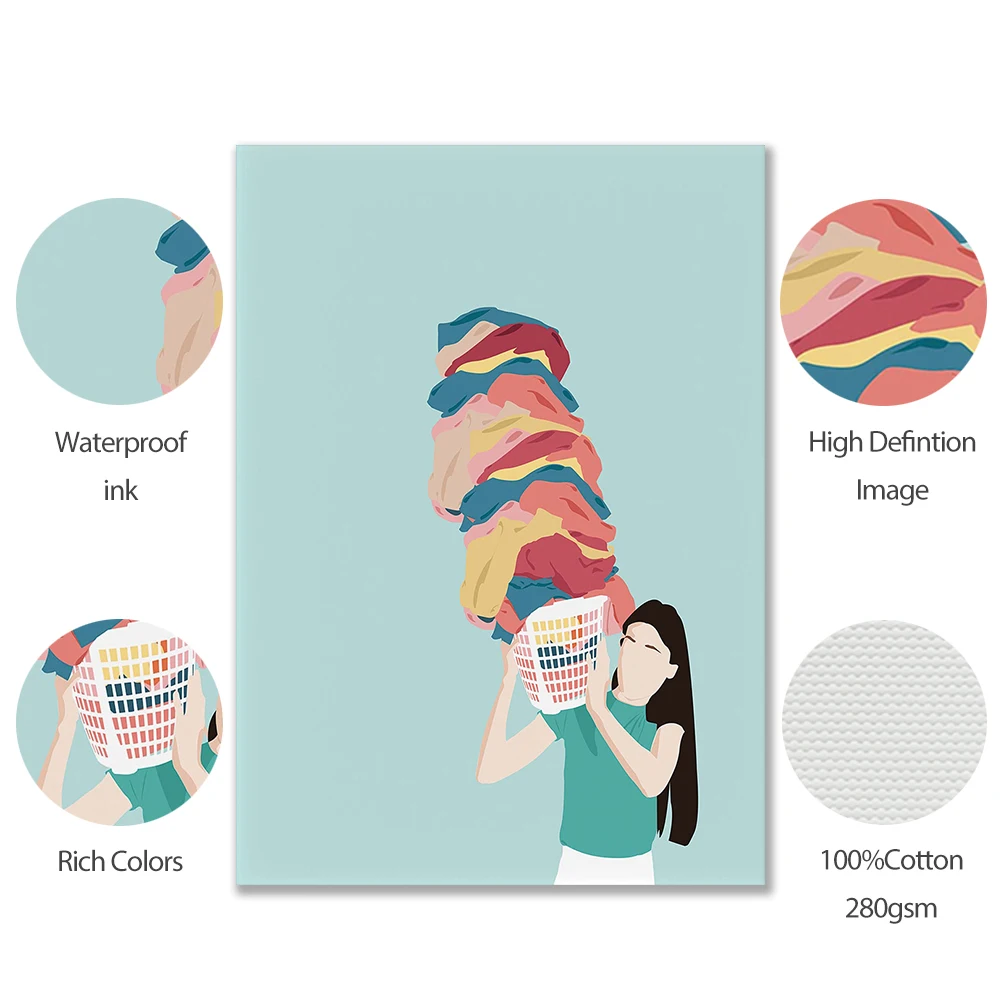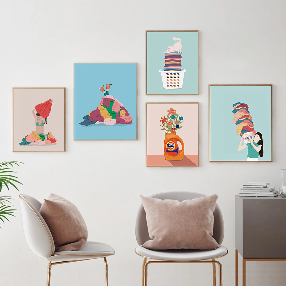 Стирка Смешные пастельные цвета настенная Картина на холсте в скандинавском стиле шайба постеры для девочек и печать настенные картины для ванной домашний декор
