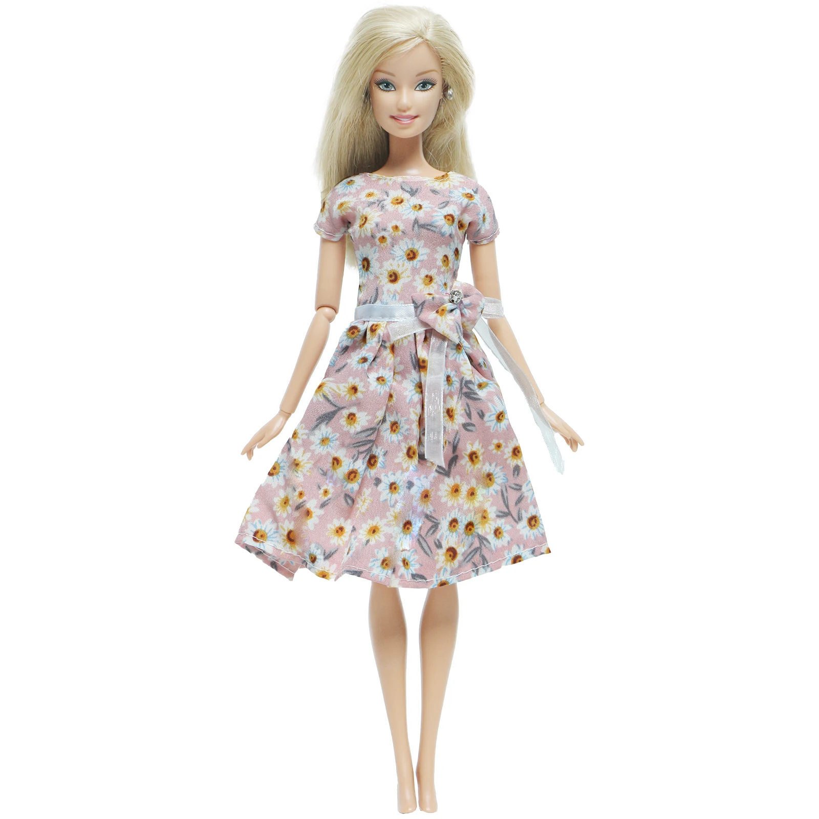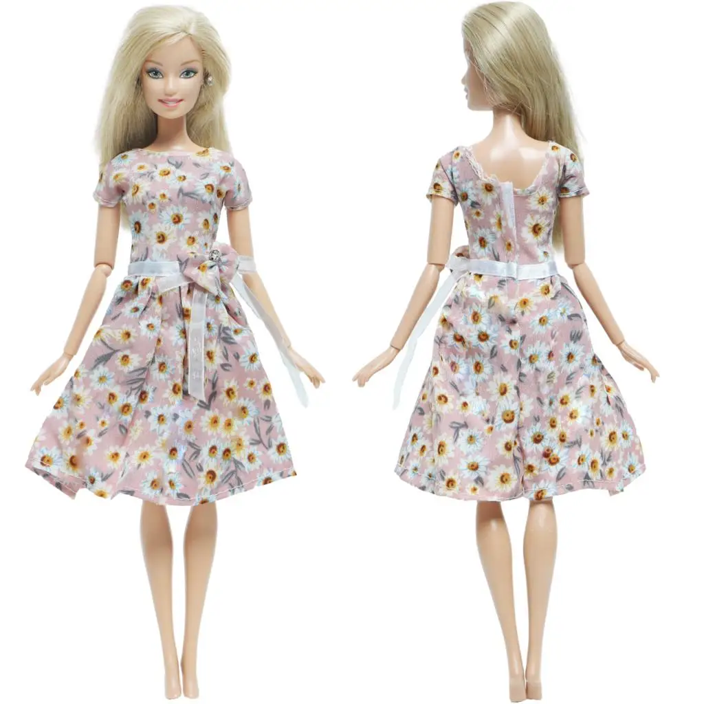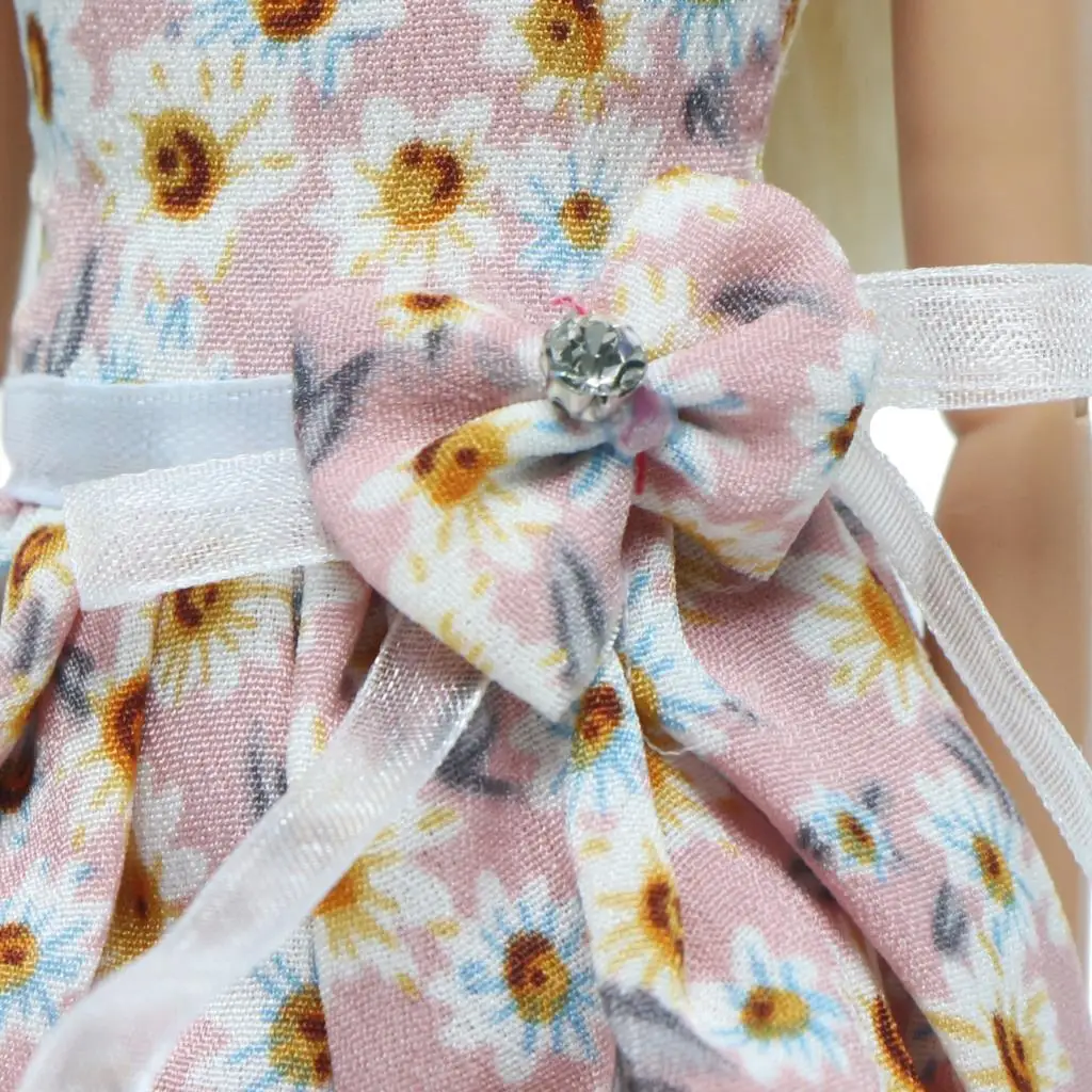 Модное платье для куклы BJDBUS, Розовый Цветочный наряд, мини-платье с бантом, юбка, повседневная одежда для Барби, аксессуары для кукол, детские игрушки