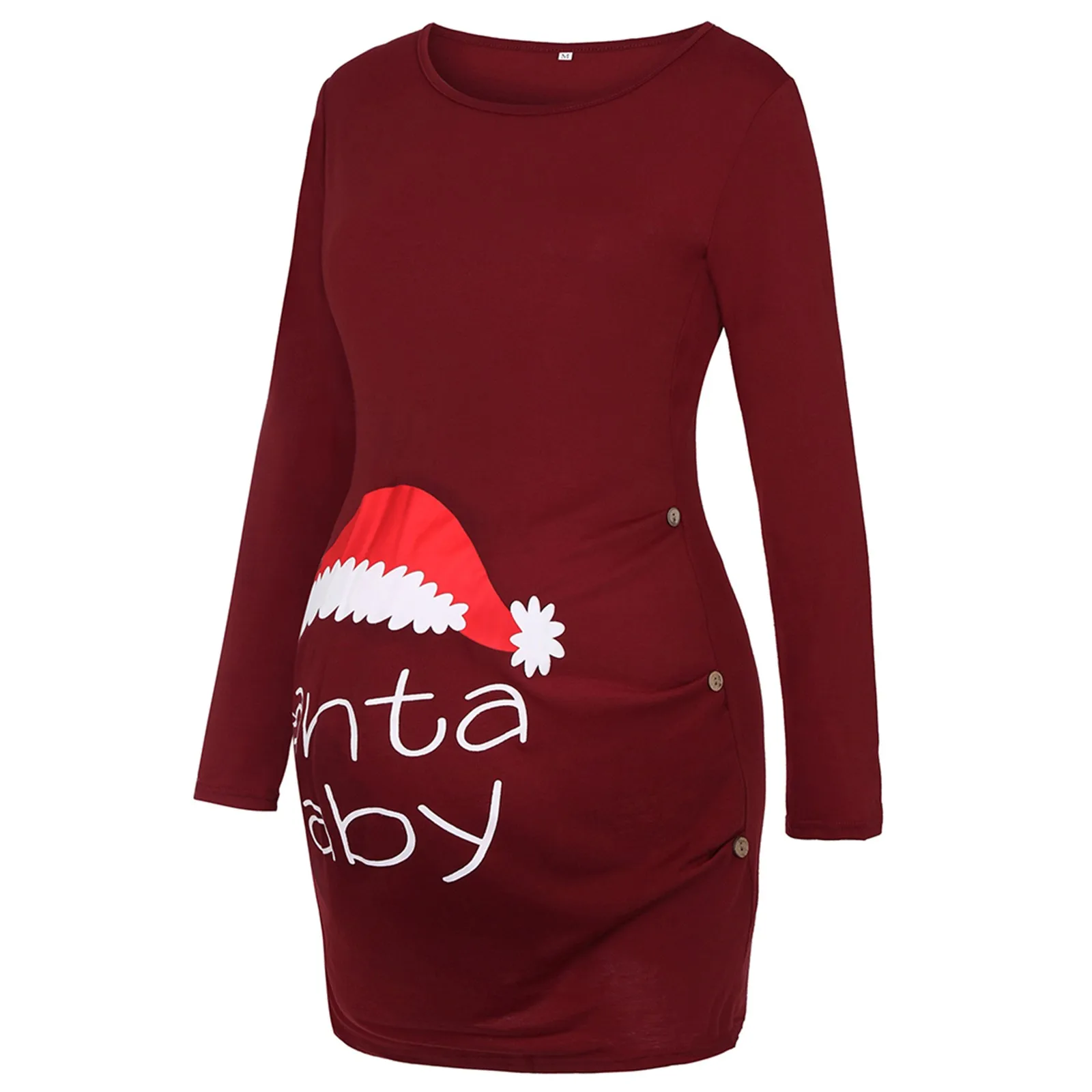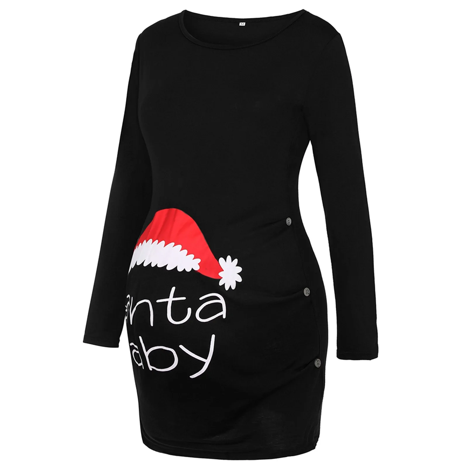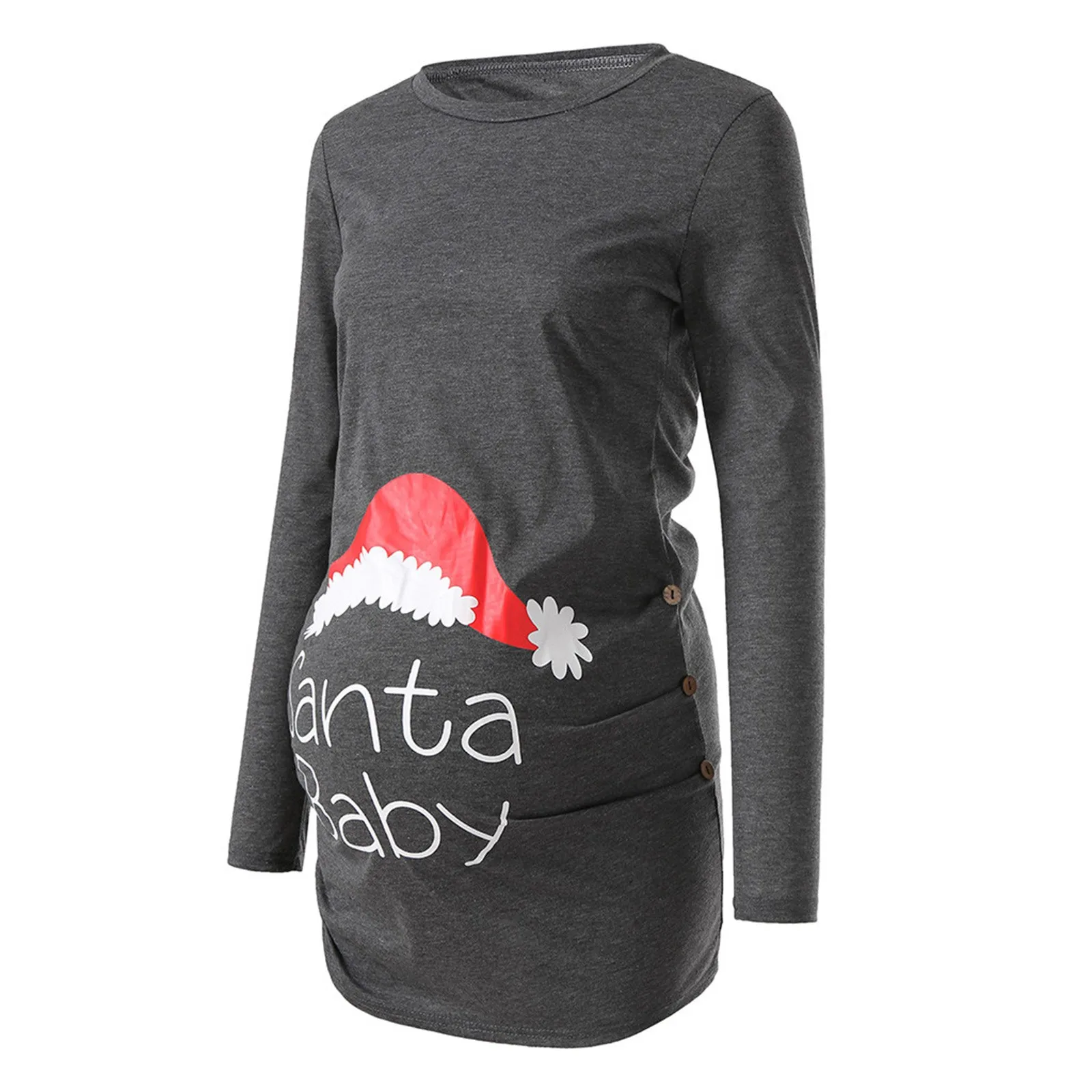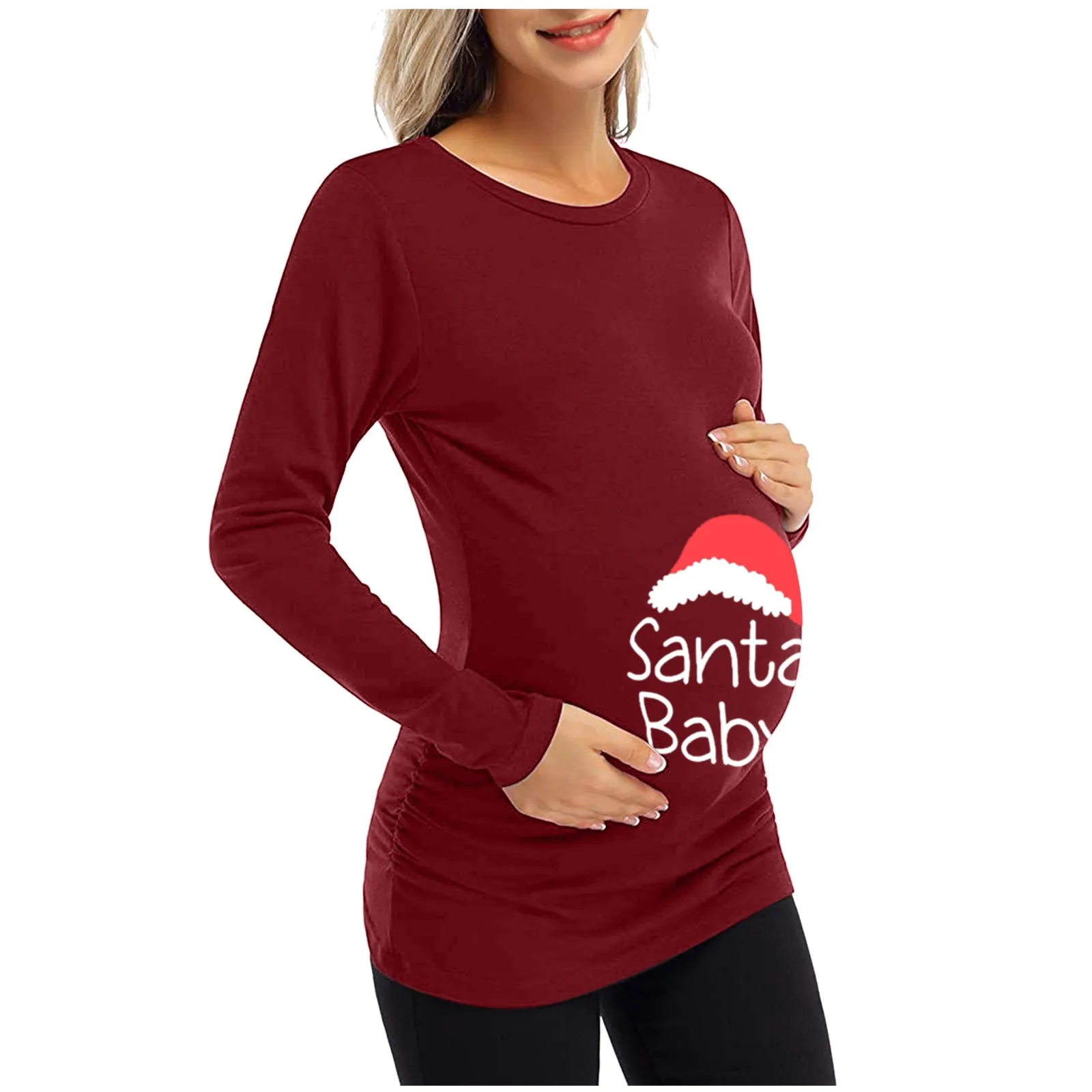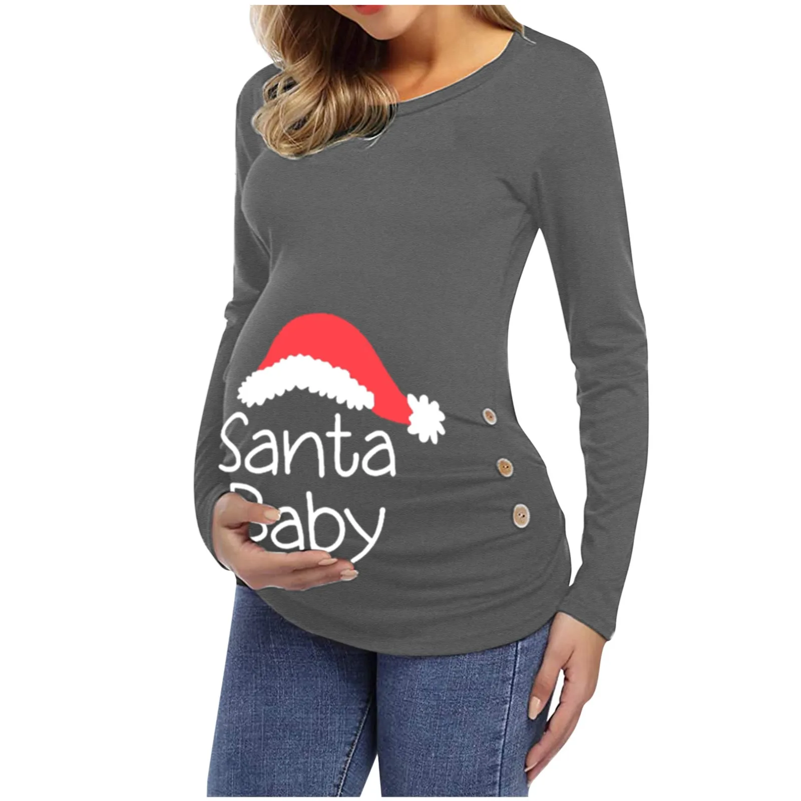 Рождественская Женская Повседневная футболка с длинным рукавом и принтом букв для беременных Осенняя домашняя Одежда для беременных