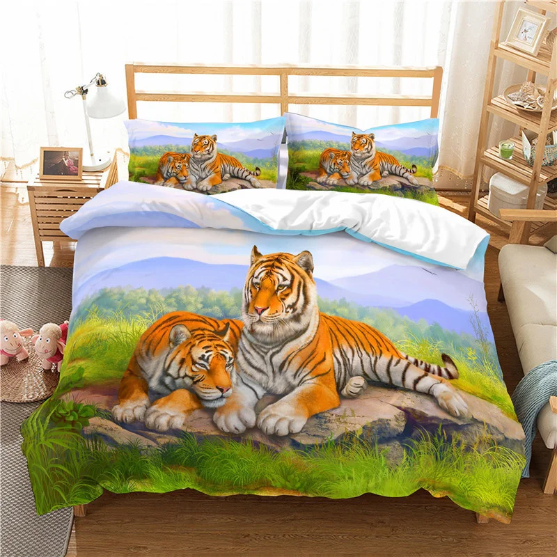 Комплекты постельного белья роскошный 3D тигровый принт удобный детский пододеяльник с животными наволочка домашний текстиль односпальноедвуспальное постельное белье